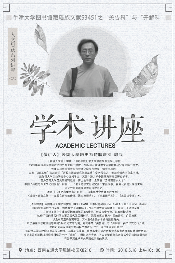 【讲座题目】牛津大学图书馆藏瑶族文献S3451之“关告科”与“开解科”