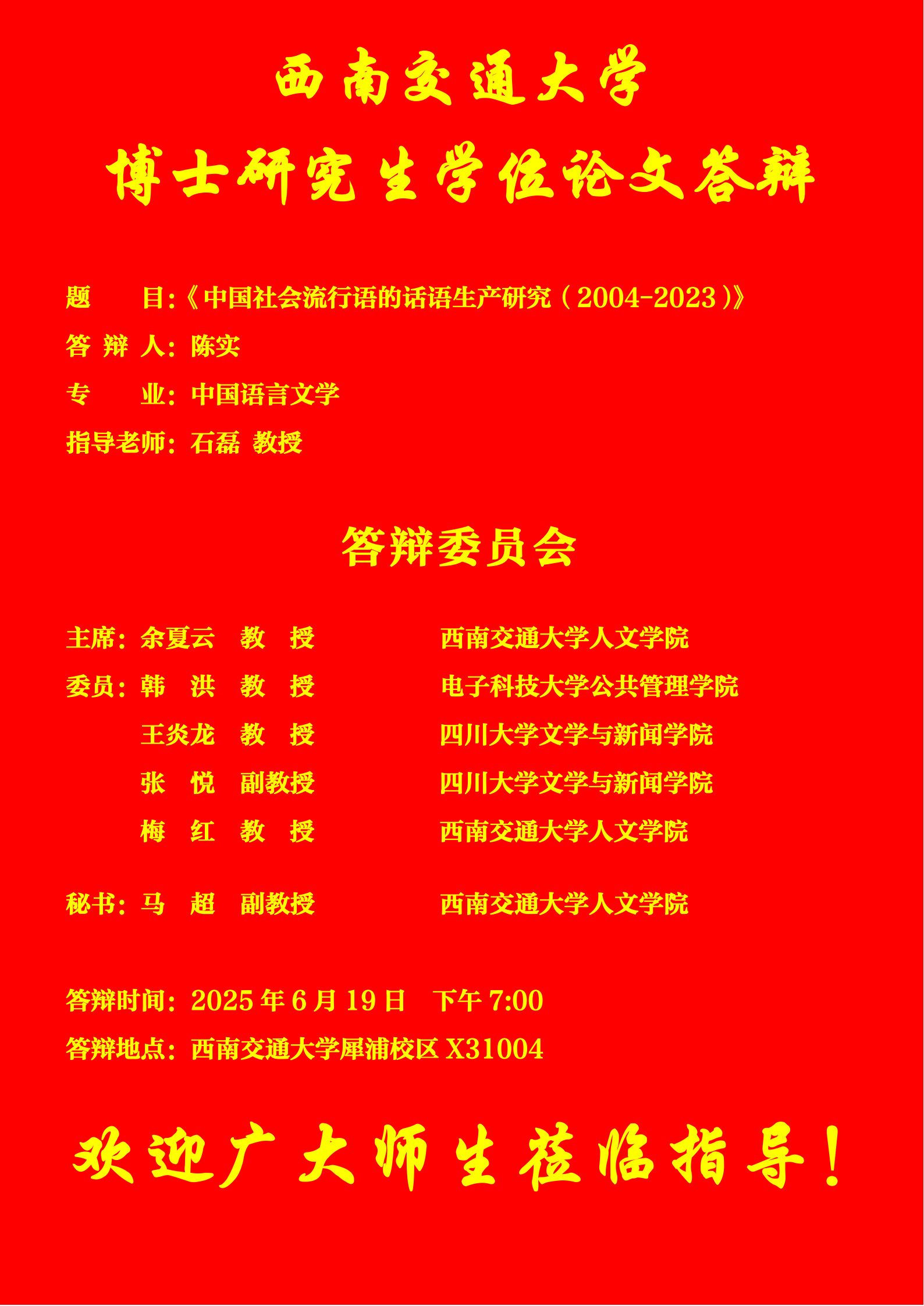 【博士答辩】 包子漫画 博士研究生学位论文答辩海报