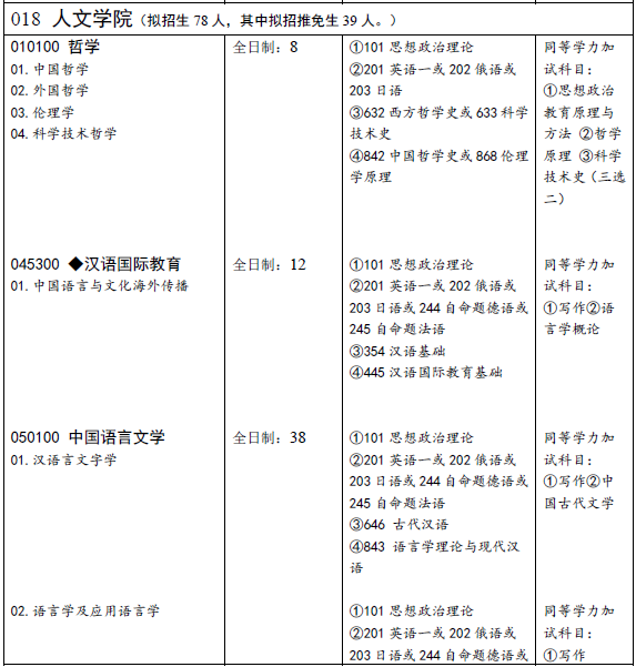 :学院拥有完整的学士、硕士、博士培养体系,设有中国语言文学一级学科博士学位点和哲学、中国语言文学、新闻传播学3个一级学科硕士学位点,中国史1个二级学科硕士点及汉语国际教育、电影艺术、音乐艺术3个专业学位硕士点和汉语言文学、传播学、广告学、音乐表演4个本科专业。