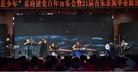 After the band's opening performance, all the graduates of 2021 music performance major performed their elaborate programs in various art forms, such as songs, instrumental ensemble, dance, sketch, etc. It created an audio-visual feast and showed four years of growth, which reflected the joy of growth and the sadness of parting, and stirred the heartstrings of teachers and students.