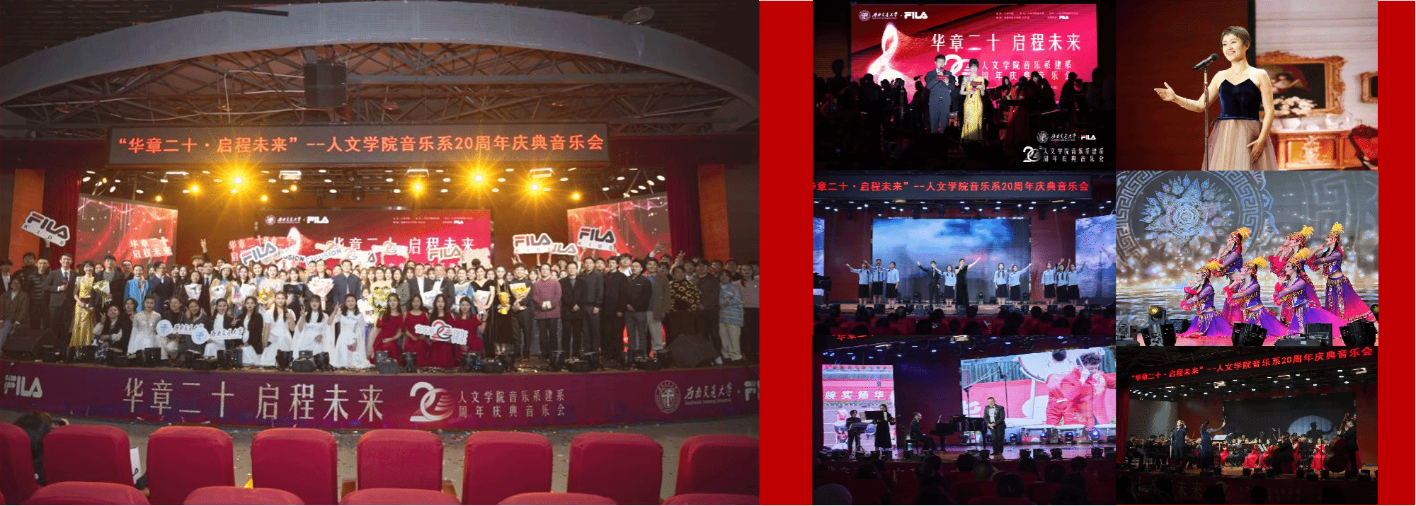 “华章二十·启程未来” 包子漫画 音乐系20周年庆典音乐会成功举行11月23号晚七点,“华章二十·启程未来” 包子漫画 音乐系20周年庆典音乐会在犀浦校区大学生活动中心成功举行。现场嘉宾有校党委副书记杨爱华、西南交通大学原副校长杨立中、校工会常务副主席靳能法、校团委书记张江泉、学工部副部长邢晓鹏、教务处副处长季敬皓、文科处副处长陈姝君、希望学院党委书记闵光辉、茅以升学院党委书记甘霖、体育学院党委书记潘喆、电气工程学院党委副书记王轶、利兹学院副院长赵舵、设计学院党委副书记赵煜、...